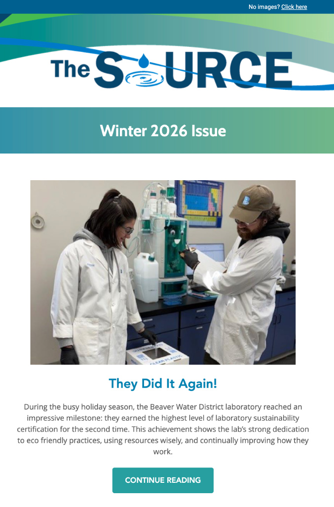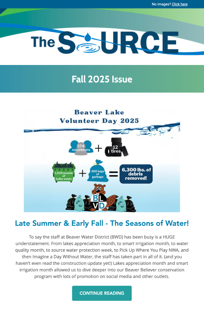 Join our mailing list to receive Beaver Water District's quarterly publication, The Source.